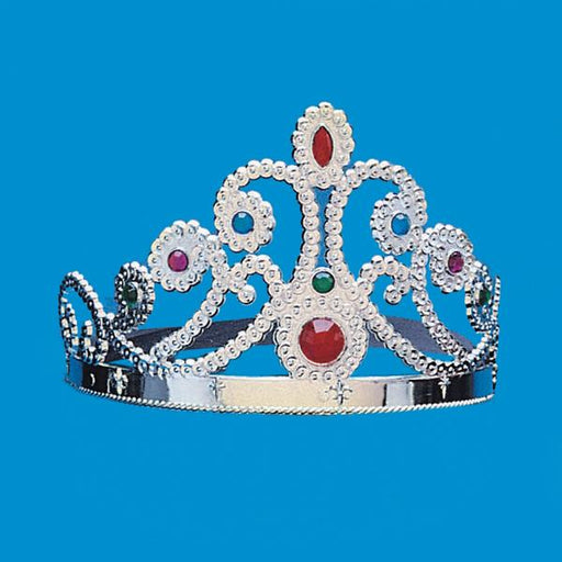 Corona realizzata in plastica, decorata con gemme. Taglia unica. Basta curvare la corona ed aggiustare così la circonferenza per adattarla alla testa.