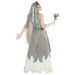 Questo macabro costume da donna rappresenta una sposa zombie ideale per la notte di halloween; il costume, in poliestere, è composto dall'abito bianco e grigio, dal velo con i cerchietto di fiori e dal classico ed intramontabile bouquet di fiori.