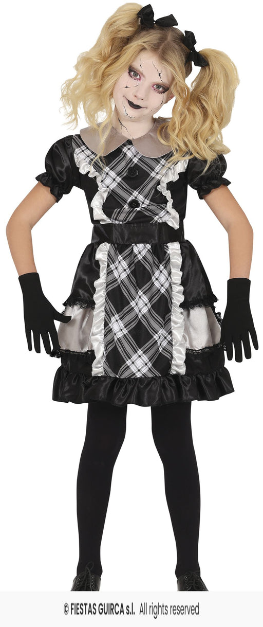 Aggiungi un tocco di terrore al costume di tua figlia con questo grembiule con contrasto nero/bianco a tema bambola di porcellana. Perfetto per tra...