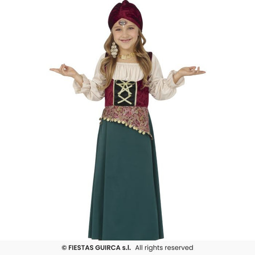 Costume gitano da chiromante per bambine. Il costume comprende: il fazzolletto per la testa e il vestito, con la gonna. Abbiamo a disposizione 3 di...
