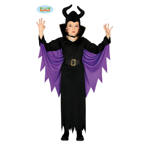 Ecco un nuovo costume per i party di Halloween della tua bambina. I colori predominanti del costume sono il nero e il viola. Il costume è completam...