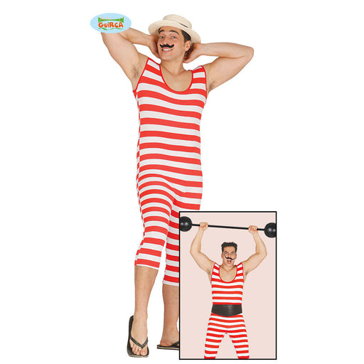 COSTUME DA BAGNANTE ANNI 30 A RIGHE ROSSE PER UOMO