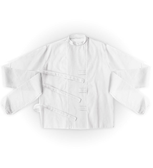Un simpaticissimo, economico ed originale costume per le tue feste di Carnevale o Halloween. Una incredibile camicia di forza in tessuto bianco, per i tuoi travestimenti da pazzo psicopatico, provvista degli appositi lacci per il fissaggio e maniche lunghissime ispirata al famoso Hannibal Lecter.