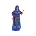 COSTUME COMPOSTO DA : TUNICA IN JERSEY CON MANTELLO TRASPARENTE E RIFINITURE IN COLORE AZZURRO CON FANTASIE GEOMETRICHE.