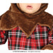 Un baby uomo lupo tutto terrore, tremore e...tenerezza. Ecco il costume di Halloween per il tuo piccolo. Tuta completa spezzata nei colori: sopra sembra una camicia scozzese a quadretti. Sulla testa gli metterai questa cuffietta che la coprirà per intero. Su questa cuffietta sono presenti le orecchie ed è tutta pelosa. E' realizzata in caldo peluche. Il colore di questa cuffia è il marrone scuro. Abbiamo a disposizione due differenti taglie: 6-12 e 12-24 mesi.
