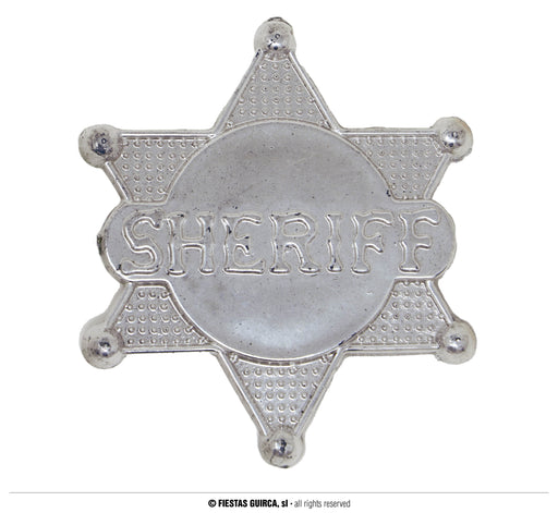 Classica stella da sceriffo realizzata in metallo. Si può appuntare direttamente al pello, grazie alla spilla di cui è dotato l'articolo, nella par...