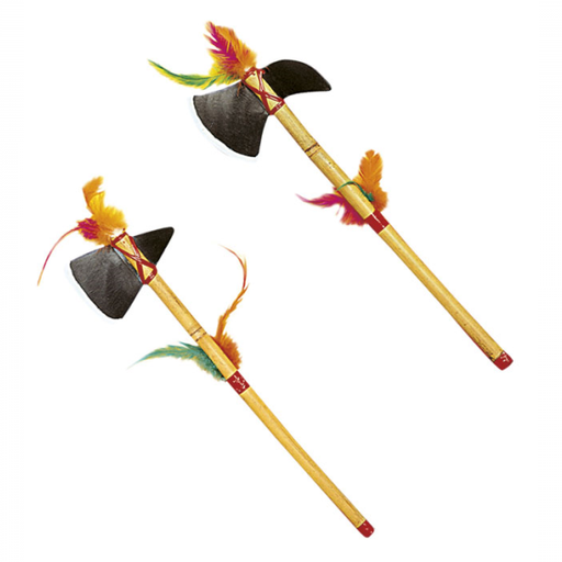 Confezione contenete 2 armi da indiano cona manico in bamboo e parte finale in plastica dura ornata da piume decorative. Lunghe circa cm. 43