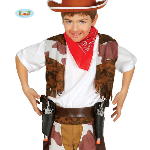 Ecco un nuovo cinturone da cowboy per bambini che si va ad aggiungere al nostro vasto catalogo. Si tratta di un cinturone da cowboy con doppia fon...