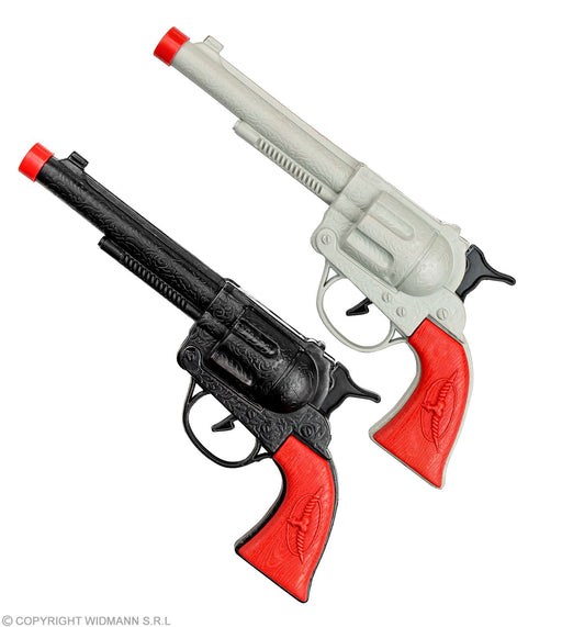 Pistola modello cowboy realizzata in plastica leggera, ma resistente. Il corpo della pistola è di colore nero, tranne l'impugnatura che è di colore...