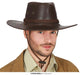 Cappello deluxe realizzato in similpelle di colore marrone scuro. Il cappello ha il pellame morbido e si indossa come una pantofola, Il cappello da cowboy è in misura d'adulto ed ha un laccio, posto al di sotto da fissare sotto il mento, grazie alla comoda chiusura in plastica, che racchiude i due lembi.