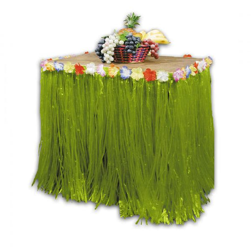 Bordo tavola in plastica di colore verde. Dimensioni: larghezza centimetri 270. Perfetta per decorare la tua tavola, durante una festa hawaiana.