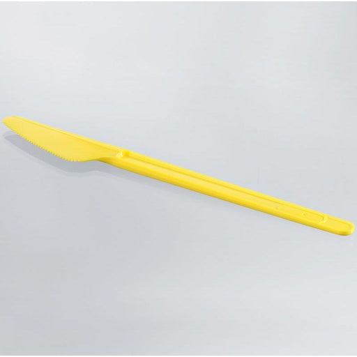 Confezioni da 50 coltelli di colore giallo limone, trasparenti. Resistenti e professionali.