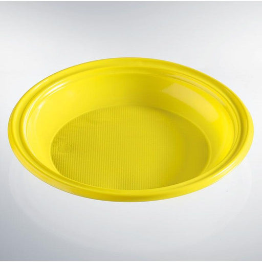 CONFEZIONE DA 30 PIATTI IN PLASTICA COLORE GIALLO DEL DIAMETRO DI CM 20.5
