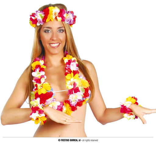 Esprimi la tua passione con questo affascinante set hawaii, composto da corona per la testa, collana per il collo e due bracciali. I colori multico...