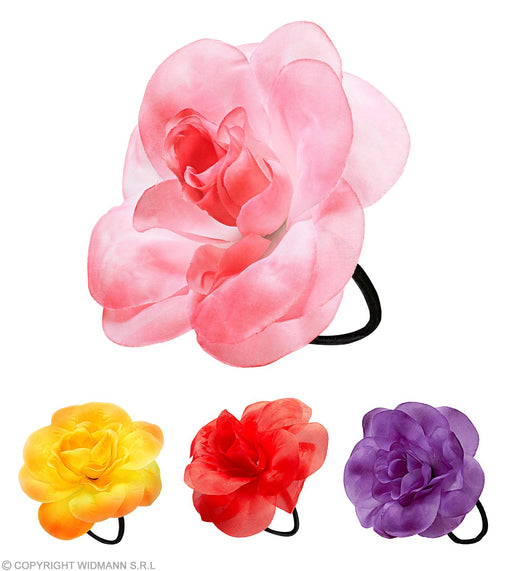 Fiore per capelli con elastico disponibile in 3 differenti colorazioni: rosso, giallo e rosa. Facilisssimo da indossare grazie al pratico elastico....