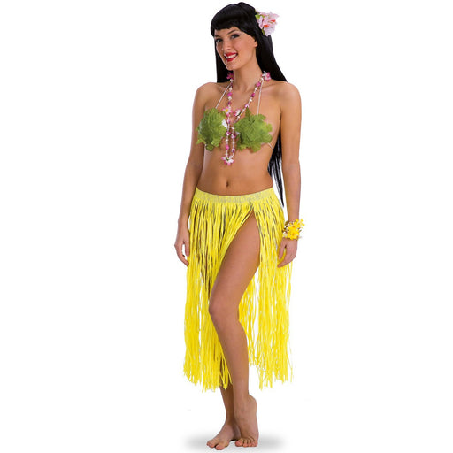 Gonna modello hawaiano in rafia naturale di colore giallo, lunghezza 45 centimetri. Adatta da abbinare a collane e braccialetti con fiori in tessut...