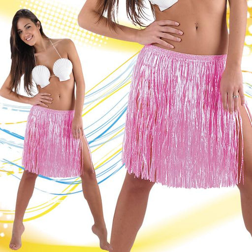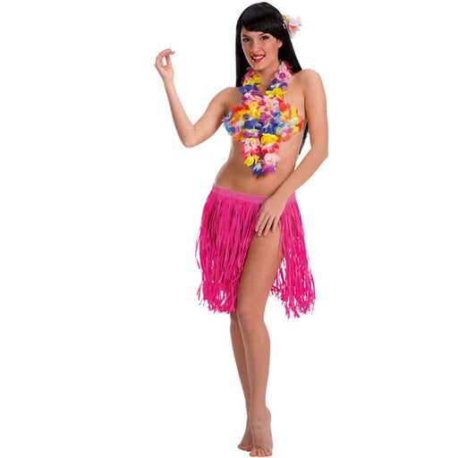 Gonna hawaiana in plastica. Lunghezza 45 centimetri. Colore rosa. Ottimo complemento per costumi in stile hawaiano.