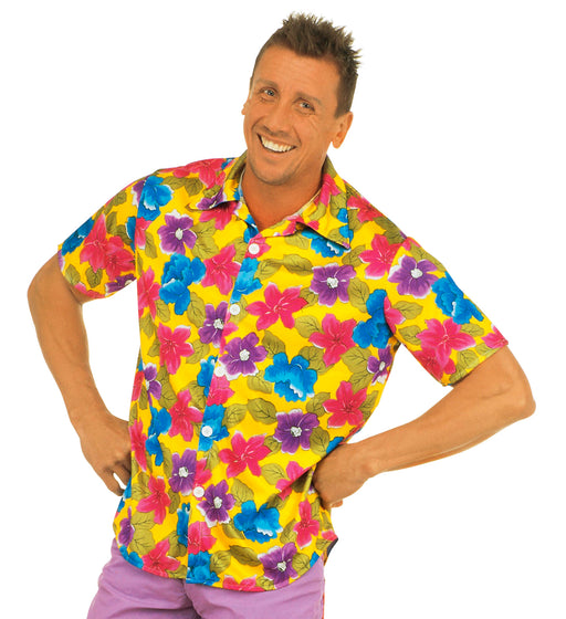 Coloratissima camicia a tema hawaii da indossare durante le feste in spiaggia piu' sfrenate dell'estate. Il tropican beach party. Da abbinare a pan...