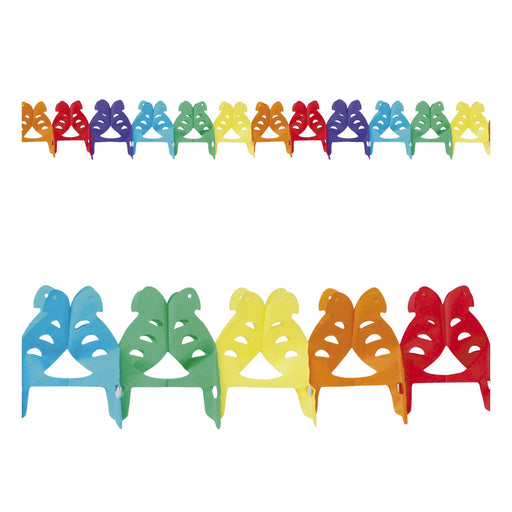 Festone con la sagoma di due pappagalli. Realizzato in carta resistente. Il festone è multicolor. Ha una lunghezza di 3 metri totali. Coloratissimo...