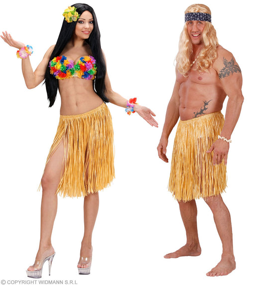 Gonnellino hawaiano lungo, arriva quasi alla caviglia, realizzato in rafia, indossabile sia da uomini che da donne perchè la gonna è composta da un...