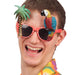 Occhiali buffi dal tipico gusto hawaiano. La caratteristica principale è quella di avere una palma e un pappagallo in plastica, montati sopra le due lenti. Gli occhiali sono di colore rosa e le lenti sono quelle per il sole. Molto simpatici e accattivanti. Perfetti con un camicia hawaiana o con gonnellini e collane sempre hawaiane.