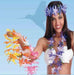 Set hawaiano con fiori di ibiscus in stoffa composto da coroncina e collana. Disponibile in arancione. Lunghezza 23 centimetri e 50 centimetri. Perfetto accessorio per ogni travestimento in tipico stile hawaiano.