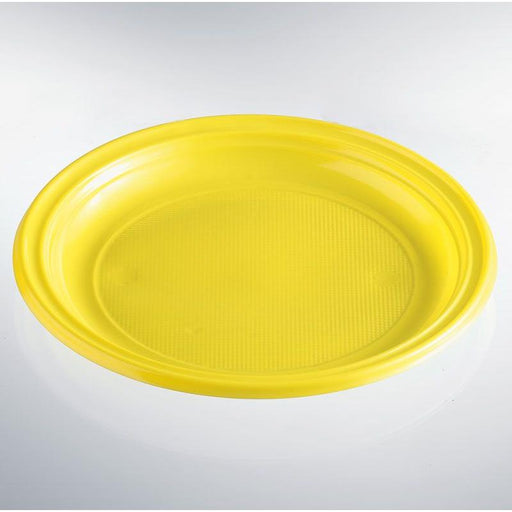 CONFEZIONE CONTENENTE 30 PIATTI IN PLASTICA COLORE GIALLO MODELLO PIANO DALLA CIRCONFERENZA DI CM 20,5