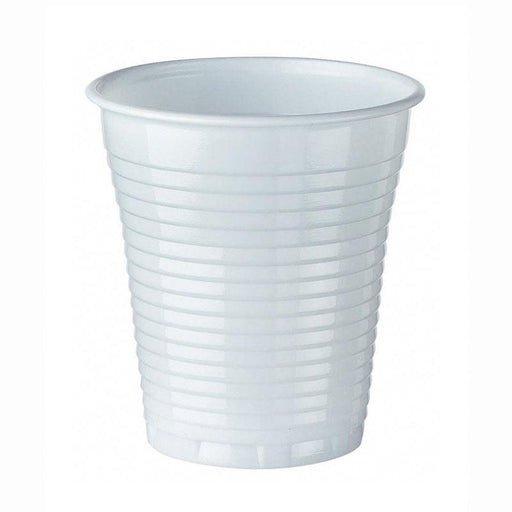 Confezione contenente 100 classici bicchieri di plastica bianca dalla capienza di centilitri 20.