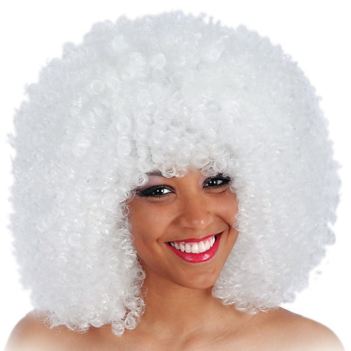 Parrucca super ricciolona bianca in valigetta, 190 grammi circa.