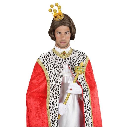 Corona realizzata in tessuto per essere messa sopra la testa e vesire i panni di un vero re. La corona si chiude a cerchio grazie al velcro.