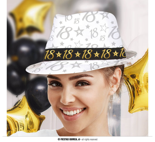 Cappello gangster tipo borsalino da far indossare al festeggiato, per il party dei suoi sudati 18 anni. Il cappello è di colore bianco con una stri...