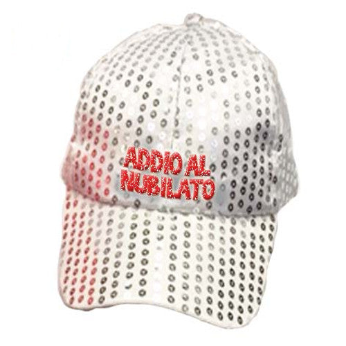 Cappellino decisamente fashion per l'addio al nubilato. La base è in colore bianco dove sono cucite tante paillettes di colore argentato. Sopra la ...