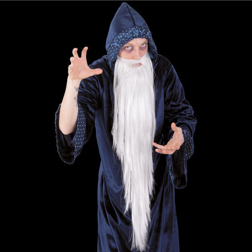 Una barba lunghissima e folta di colore bianco. Classica barba da mago o da eremita realizzata in poliestere. Stiamo parlando di una lunghezza di c...