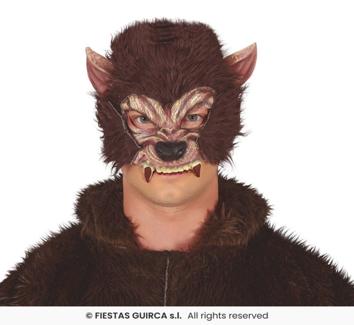 MASCHERA UOMO LUPO MARRONE CON PELO