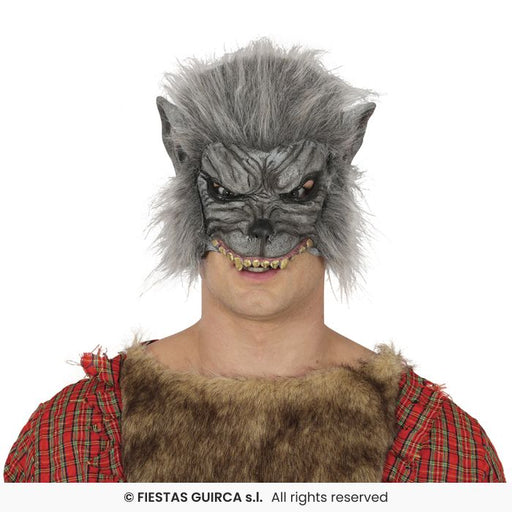 🌕 Scatena la bestia che è in te! 🐺 La Maschera Mezzo Uomo Lupo Grigio con Capelli in Fingomma è perfetta per una trasformazione terrificante e real...