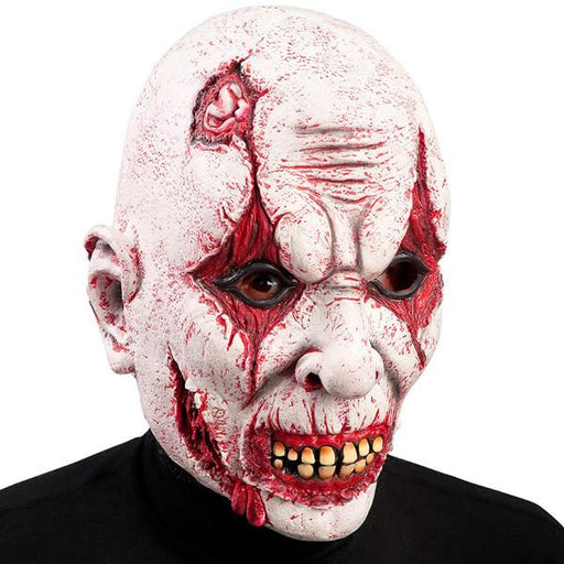 Terrificante maschera che ricopre sia la faccia sia la nuca, raffigurante un clown horror.Colore bianco della maschera che si mescola al rosso dell...