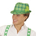 Fedora da indossare durante il giorno di San Patrizio. Tema a quadretti di differenti tonalità di verde, dal più chiaro allo scuro. Il trifoglio rifinisce l'articolo. Taglia standard da adulto.