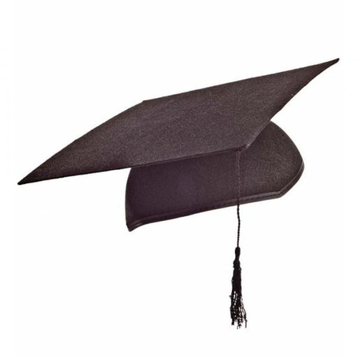 Cappello modello laureato in feltro di colore nero. Il cappello è composto da due parti, la coppoletta e la parte superiore quadrata. Le due part...