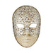 Maschera Veneziana che copre l'intero volto, caratterizzata dalle tonalità pastello chiara e finemente rifinita con lussureggiante macrame' e caratteristico craquele'. Come potete notare l'effetto che dona la maschera è davvero unico. Caratteristica maschera del Carnevale Veneziano.