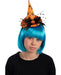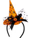 Mini cappellino a punta da strega di colore arancione con motivi (zucchette di Halloween) di colore nero. Sulla parte frontale sono presenti due fiocchi, uno piccolo di rasetto ed uno più grande di tulle. Il cappellino si indossa, grazie all'utilizzo del cerchietto, annesso all'articolo, e che risulta essere imbottito, per un maggior confort sulla testa.
