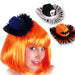 Gadget per la festa di Halloween, cappellino mignon modello cowboy rivisitato in chiave Horror. Disponibile in tre varianti di colore (nero, arancione e viola) con applicato un differente dettaglio tra teschio, ragno o pipistrello.
