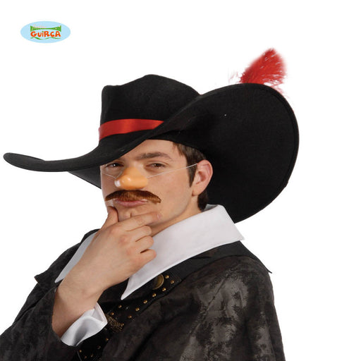 Cappello da moschettiere realizzato in feltro. Con la classica piuma bianca incastrata a lato del cappello stesso. Disponibile in rosso. Basterà me...