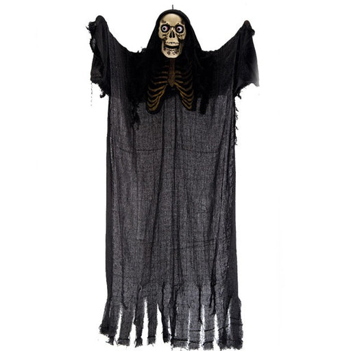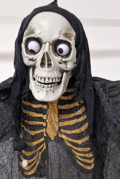 SCHELETRO SONORO CON TUNICA NERA E OCCHI LUMINOSI E GIREVOLI