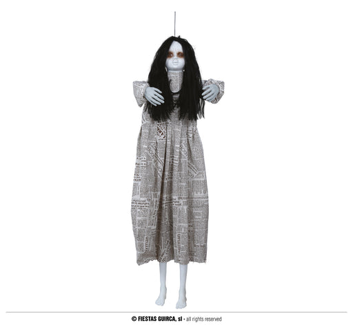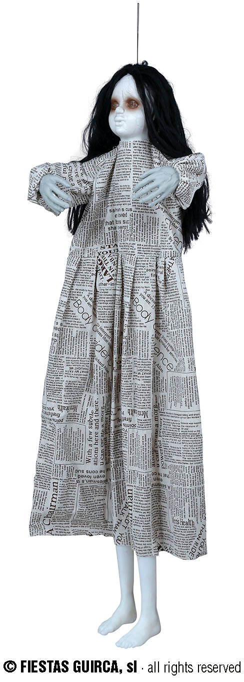 BAMBINA CADAVERICA CON VESTITO DI GIORNALE ED OCCHI LUMINOSI CM 120