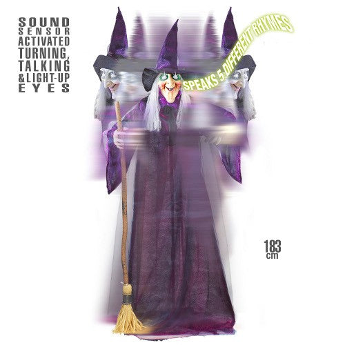 Strega malefica che sghignazza ed emette suoni. Gli occhi si illuminano. E' alta centiemtri 183....ed ha tanta cattiveria da mostrare. Ruota su se ...