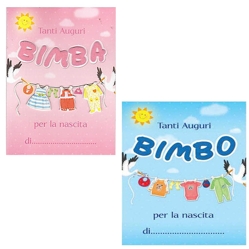 BIGLIETTO AUGURI NASCITA BIMBO E BIMBA