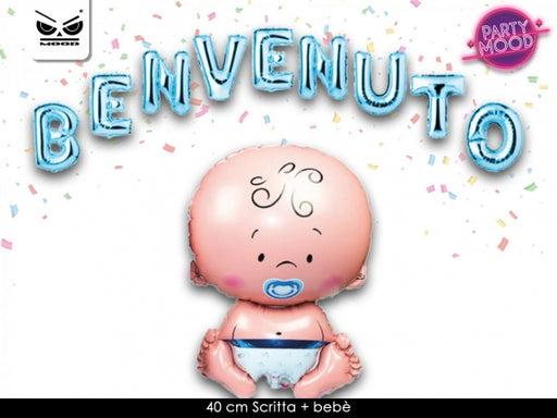 KIT PALLONCINI NASCITA CON SCRITTA BENVENUTO/A