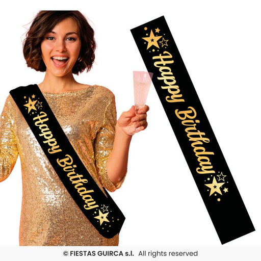 Celebra in grande stile con la nostra fantastica fascia Happy Birthday! Realizzata in poliestere con un vivace contrasto di colori nero e oro, ques...