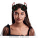 Questo elegante cerchietto da diavolessa con fiori neri in tulle è l'accessorio perfetto per completare il tuo look diabolico. Un mix irresistibile di sensualità e mistero che ti farà brillare in ogni occasione!