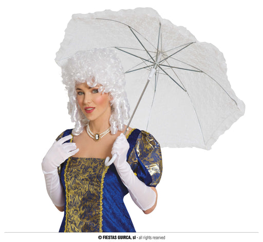 Aggiungi un tocco di eleganza al tuo costume di carnevale con questo splendido ombrellino d'epoca in pizzo bianco di 70 cm di diametro. Protettivo ...